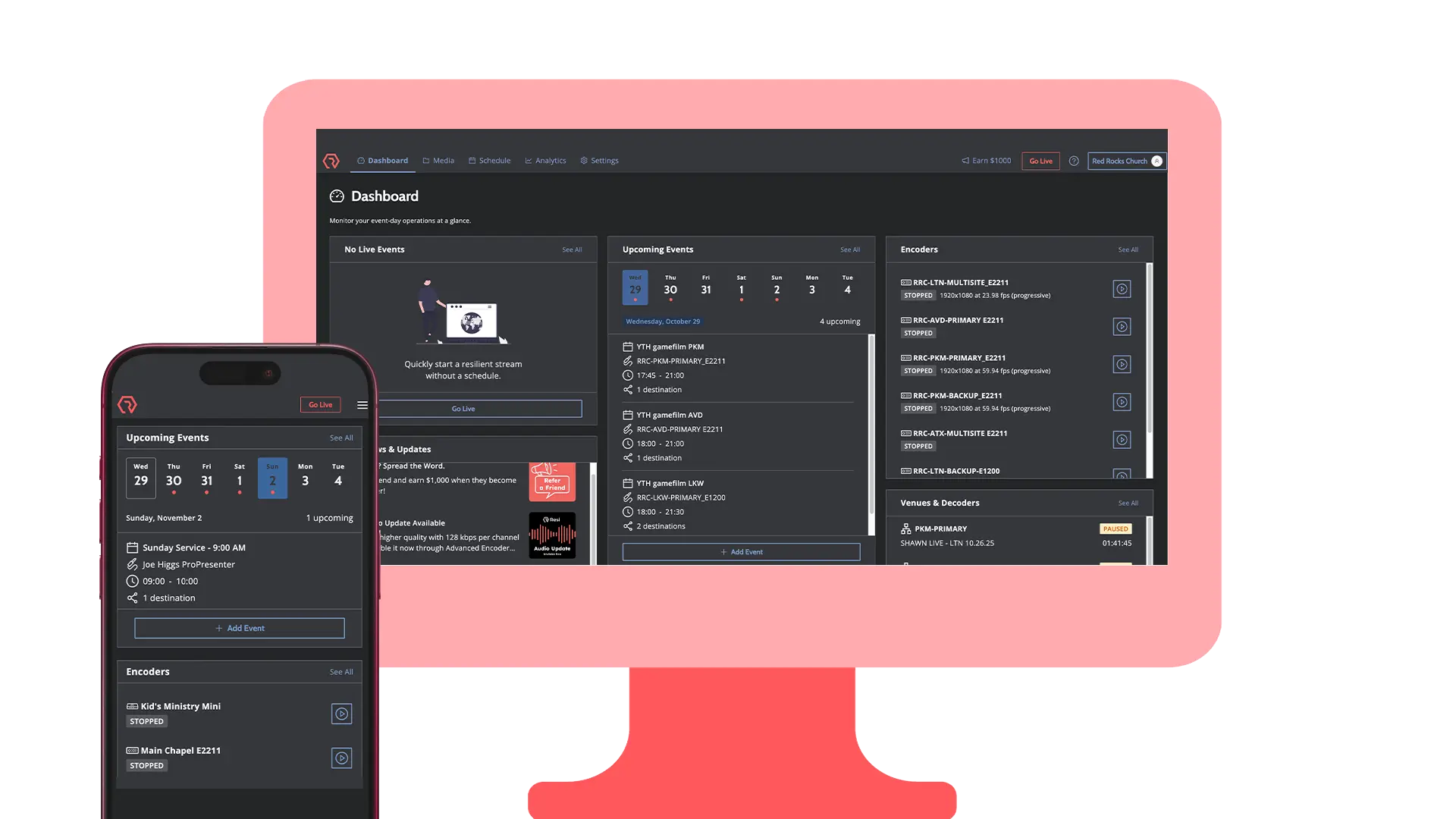 Manage, monitor, and adjust your streams from any device with a fully responsive, mobile-friendly experience.